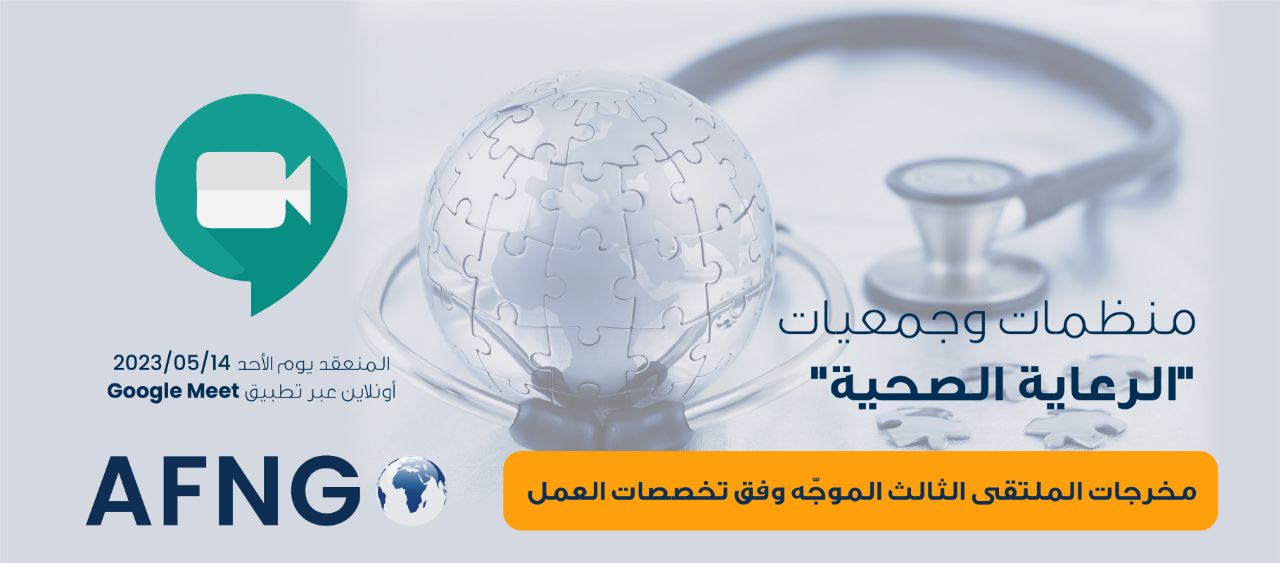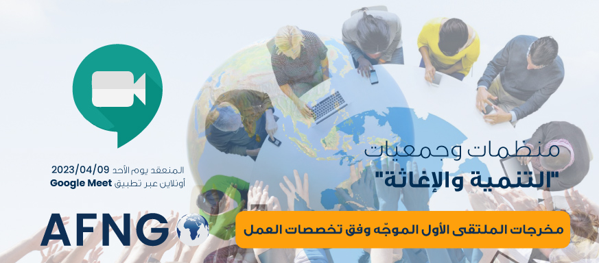 عقدَ الاتحاد العربي للمنظمات غير الحكومية (AFNGO) ملتقاه الأول الموجّه وفق تخصصات العمل، والذي ضم المنظمات والجمعيات الأعضاء العاملة في مجالي "التنمية والإغاثة". وذلك في تمام الساعة 1:00 ظهراً بتوقيت غرينتش من يوم الأحد الواقع في 09/04/2023، أونلاين عبر تطبيق Google Meet.